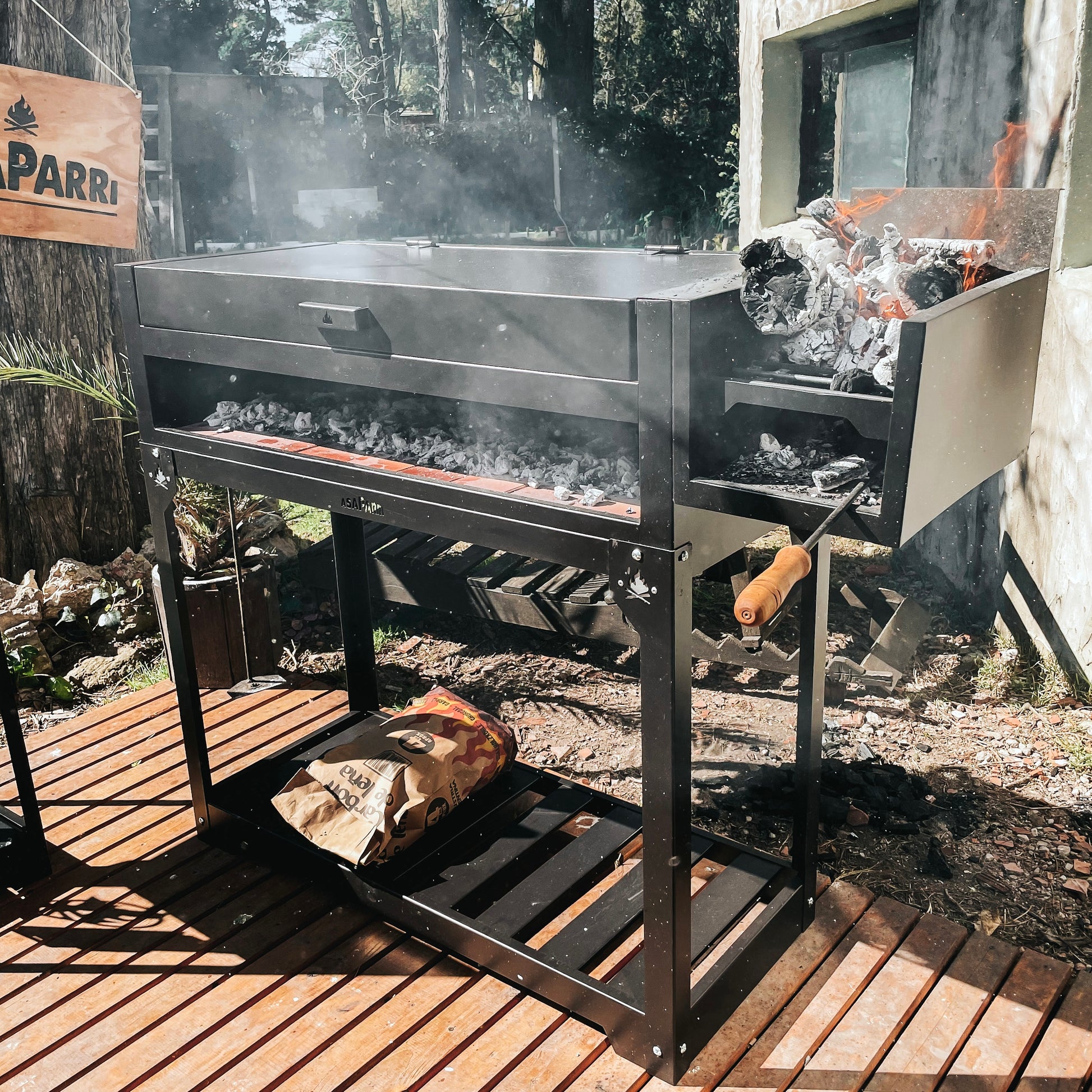- Capacity: Fits a standard bag of charcoal or, even better, a full load of firewood